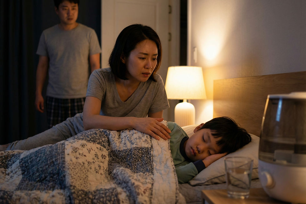 Q: 6세 아이가 새벽에 갑자기 컹컹거리는 기침을 해요. 폐렴일까요?