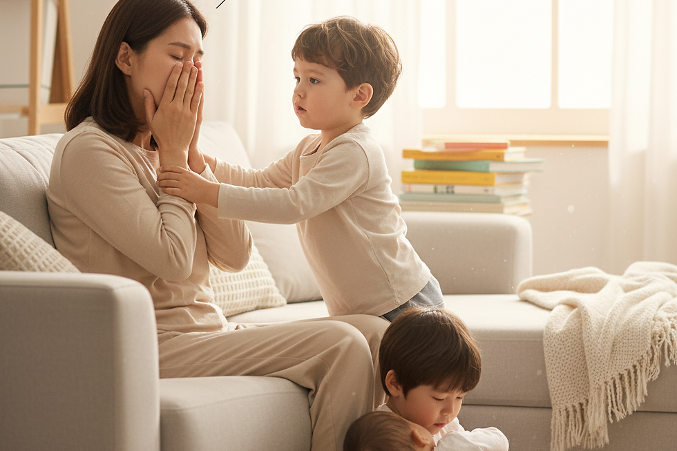 하루에 세 번이나 아이가 제 옷에 토하고, 겨우 갈아입은 옷에 또 토하고, 유모차는 접히지 않고, 예약한 소아과가 아닌 다른 지점으로 잘못 찾아가고, 카시트에 손가락이 끼이는 등 정말 최악의 하루를 보냈습니다. 심지어 집주인이 집을 보러 오기로 한 날인 걸 깜빡해서, 늘 엉망인 집을 부랴부랴 치워야 했어요. 아이 셋을 키우는 게 보통 일이 아니네요. 그러다 아이들 낮잠도 못 재운 채 상담 약속에 허둥지둥 나갔다가 집에 돌아왔습니다. 모든 일정이 끝나고 소파에 앉으니 정신적으로나 육체적으로 너무 지쳐서 눈물이 왈칵 쏟아졌습니다. 모든 걸 내려놓고 싶다는 생각이 들 때쯤, 어린 아들이 다가와 제 어깨를 부드럽게 토닥여주며 따뜻하게 안아주더군요. 5살 아이는 제게 "엄마, 심호흡 해봐"라고 말하며 차분히 저를 도와주었습니다. 제가 가끔 무너질 때도 있지만, 적어도 우리 아이들은 정말 괜찮은 사람으로 자라고 있는 것 같아 위로가 되었습니다. 다른 부모님들은 어떠신가요?
